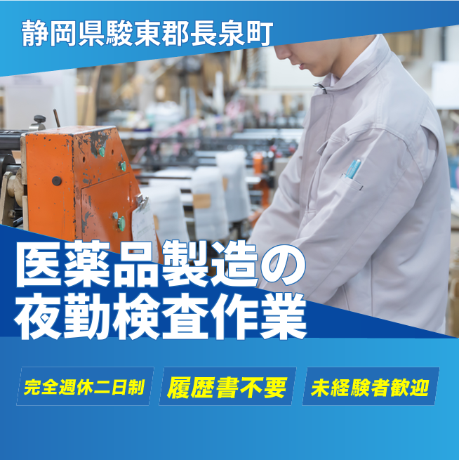 給与詳細 月収例 257,400円 日給例 10,560円 勤務地 静岡県駿東郡長泉町 仕事内容 【夜勤】医薬品製造企業にて、ハンドリフトやウォーキ―での資材移動や、PCで電子記録のチェックやお仕事です!