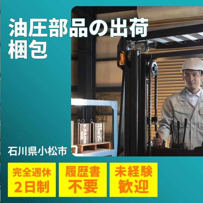 給与詳細 月収例 220,000円 日給例 11,000円 勤務地 石川県小松市 仕事内容 製品(油圧シリンダーなど)を梱包材を使って梱包し、フォークリフトでパレットに乗せて運搬いただきます。