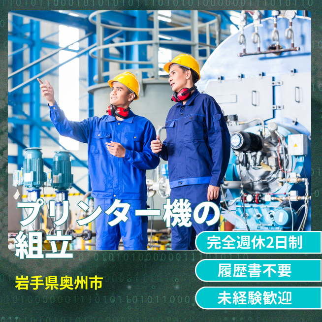給与詳細 月収例 192,000円 時給例 1,250円 勤務地 岩手県奥州市 仕事内容 プリンターの組立スタッフ募集!