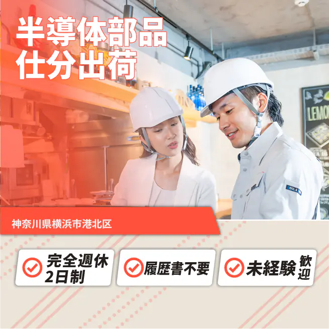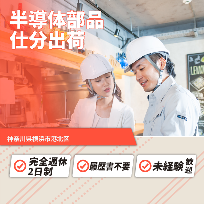 給与詳細 月収例 200,000円 日給例 10,000円 勤務地 神奈川県横浜市港北区 仕事内容 【半導体部品仕分出荷】