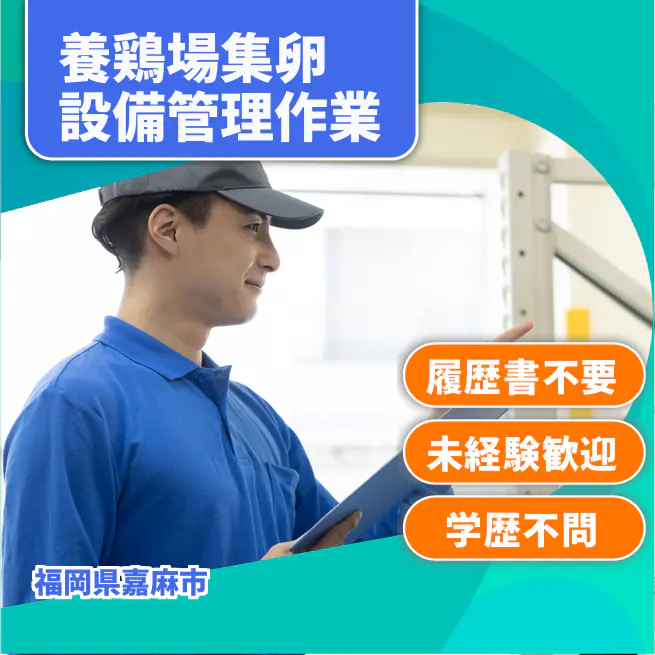 給与詳細 月収例 184,000円 時給例 1,150円 勤務地 福岡県嘉麻市 仕事内容 【養鶏場集卵設備管理作業】