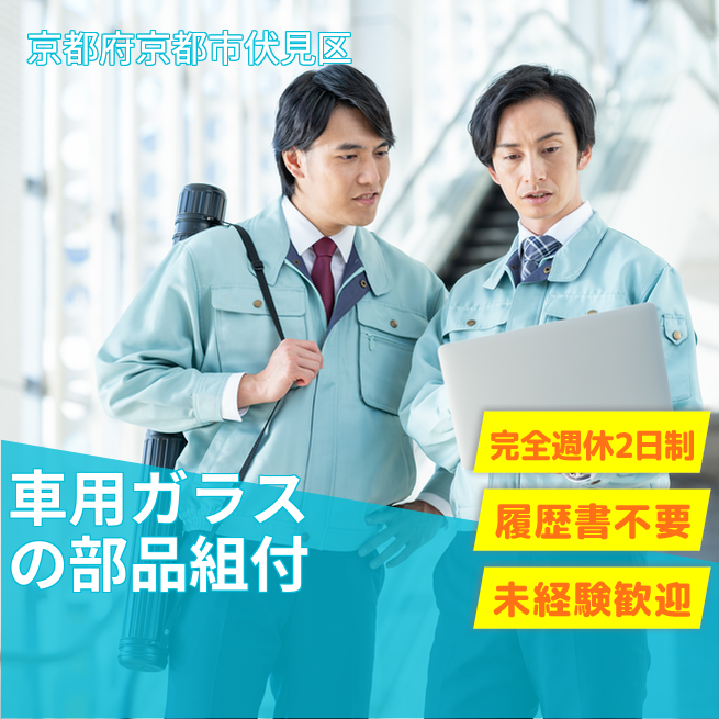 給与詳細 月収例 234,000円 時給例 1,200円 勤務地 京都府京都市伏見区 仕事内容 自動車ガラスへの小物部品の組付け作業(製造ラインにて流れてくるガラスに各種部品を手作業・工具を使って組立てる作業です。)