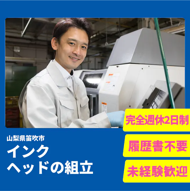 給与詳細 月収例 201,666円 日給例 10,083円 勤務地 山梨県笛吹市 仕事内容 インクジェットヘッドの組立作業