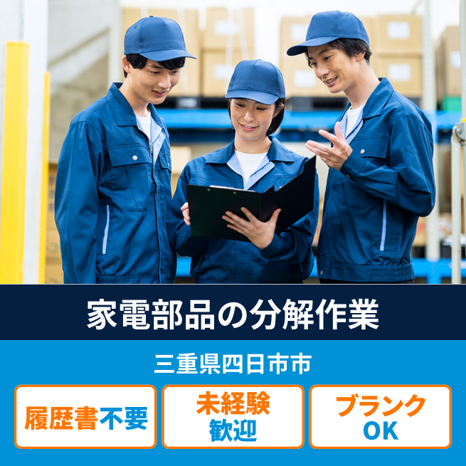 給与詳細 月収例 257,400円 日給例 10,560円 勤務地 三重県四日市市 仕事内容 廃家電製品(冷蔵庫、エアコン、洗濯機、テレビ)の解体作業