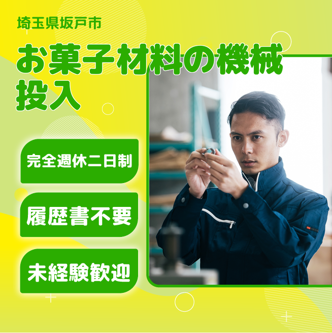 全般・お菓子製造する為の材料の投入(マシンオペレーター)、充填業務、運搬等