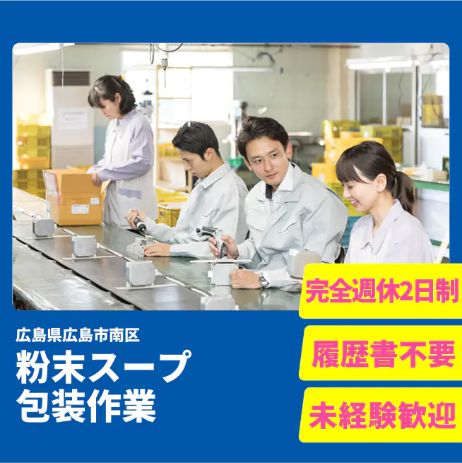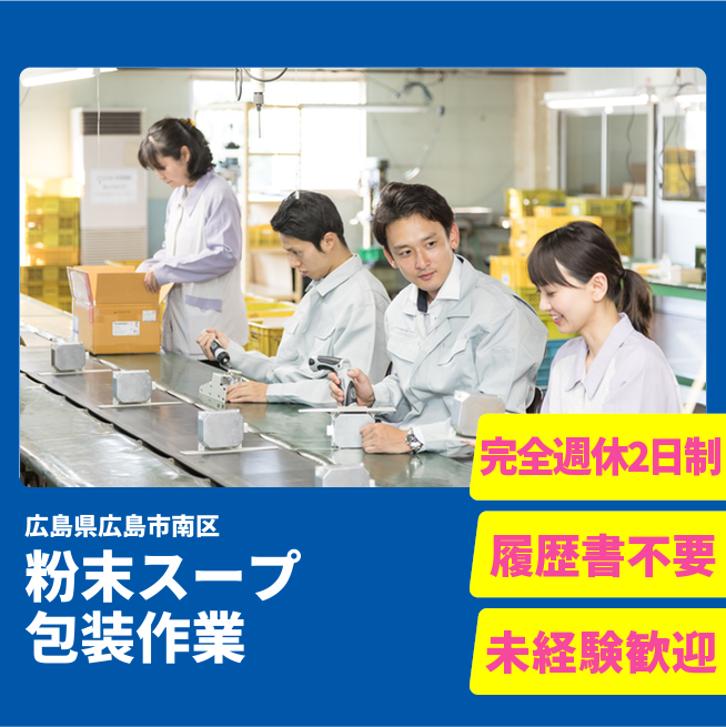 給与詳細 月収例 220,000円 日給例 11,000円 勤務地 広島県広島市南区 仕事内容 【業務内容】ラーメンスープ製造の機械オペレーション