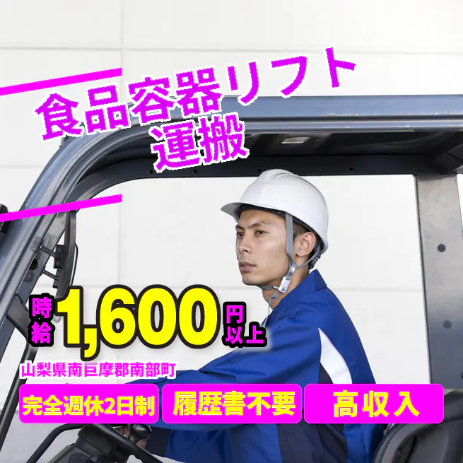 給与詳細 月収例 270,000円 時給例 1,630円 勤務地 山梨県南巨摩郡南部町 仕事内容 【業務内容】