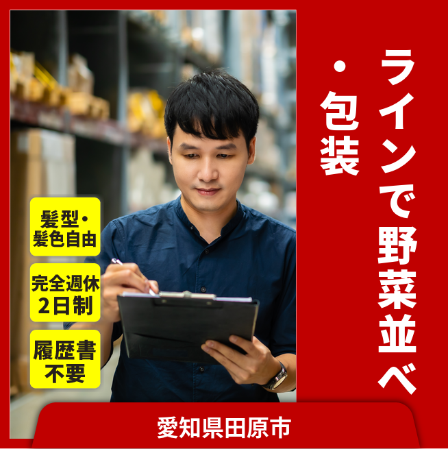 給与詳細 月収例 184,000円 時給例 1,234円 勤務地 愛知県田原市 仕事内容 包装された漬物に穴が開いてないかの検査、検査後に箱へ詰めるお仕事です。