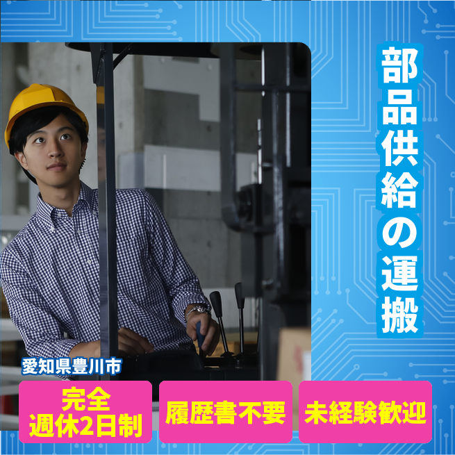 給与詳細 月収例 220,000円 日給例 11,000円 勤務地 愛知県豊川市 仕事内容 工場内の製品の運搬・出荷・部品供給