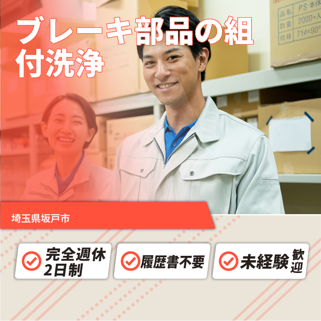 給与詳細 月収例 200,000円 日給例 10,000円 勤務地 埼玉県坂戸市 仕事内容 商用車用(バス・トラック)のブレーキの製造