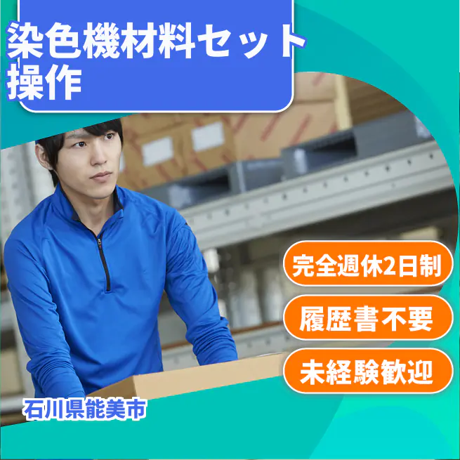 染色・乾燥機へ材料セットするオペレーターです。