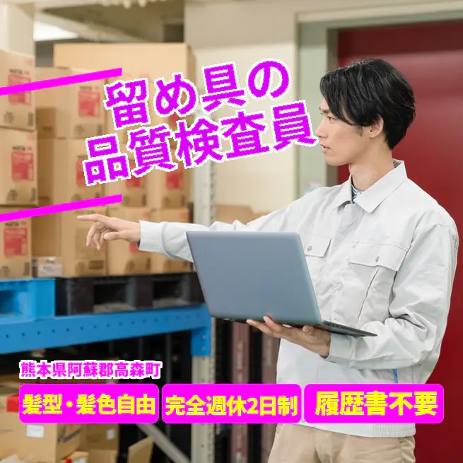 自動車用ファスナー、ボルト、ナットの製造業務、マシンオペレーター、検査業務、品質管理、簡単作業、機械にセットしてボタンを押す