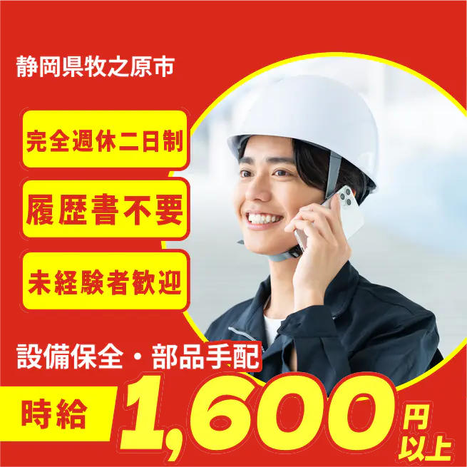 給与詳細 月収例 300,000円 時給例 1,650円 勤務地 静岡県牧之原市 仕事内容 【業務内容】