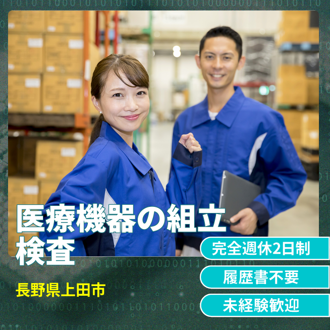 給与詳細 月収例 224,250円 時給例 1,150円 勤務地 長野県上田市 仕事内容 医療機器の“精密ものづくり”に関われる組立・検査のお仕事です。ドライバーなどの工具を使い、小型部品や細かな基板の組立、仕上がりチェック(検査)まで担当します。