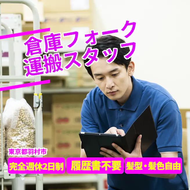 羽村・瑞穂就業場所選択可能!経験者歓迎!重量物なし日勤の自動車部品のピッキング、倉庫内フォーク作業です!