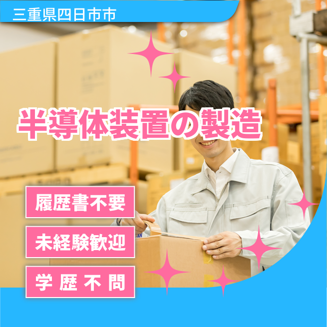 給与詳細 月収例 253,500円 日給例 10,400円 勤務地 三重県四日市市 仕事内容 半導体製品製造工場で使われる装置部品の精密洗浄。水/薬剤を利用して製品の洗浄をしていく。最終工程では、CR内にて検査して梱包