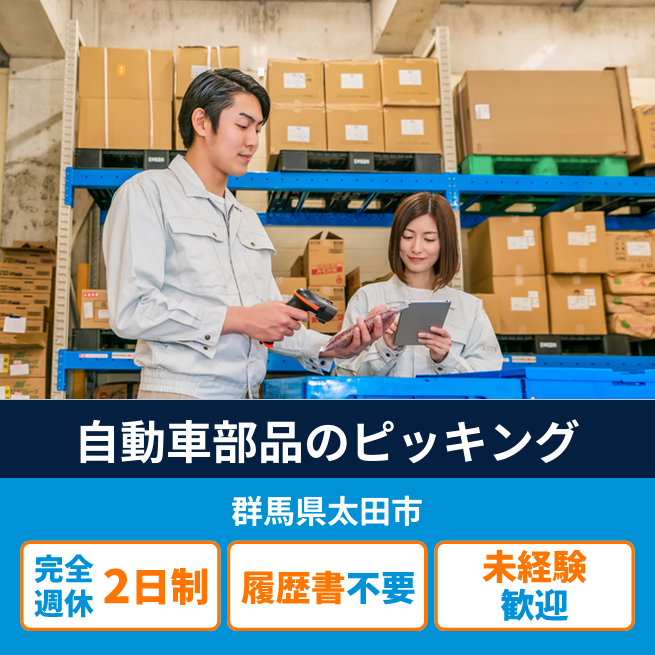 ◆試用期間あり(14日間) 公開日 2024年02月01日 自動車部品のピッキング業務。