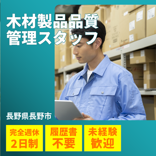 《品質管理業務》人工再生木材などの製品の品質管理のお仕事です。パソコン使用してのデータ管理、入力や製造現場へ部品を取りに行っていただくなどの業務動きもあるお仕事になります!