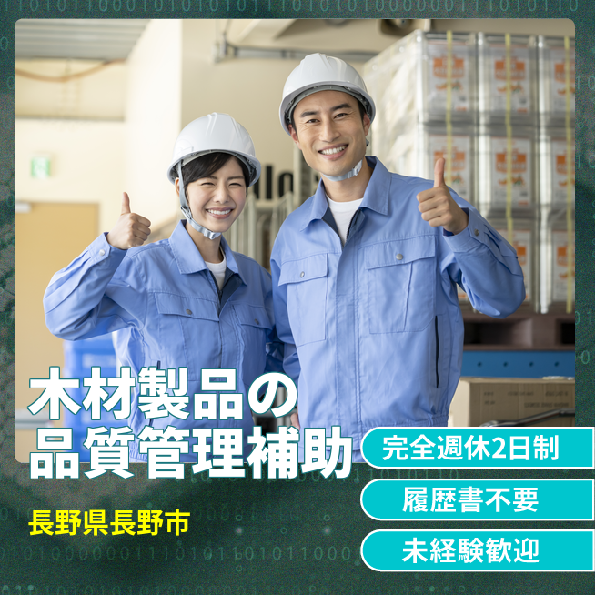 《品質管理業務》人工再生木材などの製品の品質管理のお仕事です。パソコン使用してのデータ管理、入力や製造現場へ部品を取りに行っていただくなどの業務動きもあるお仕事になります!