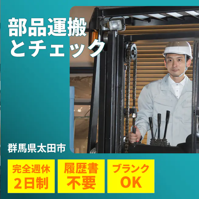 ◆試用期間あり(14日間) 公開日 2024年02月01日 【業務内容】自動車部品のフォークリフト運搬作業