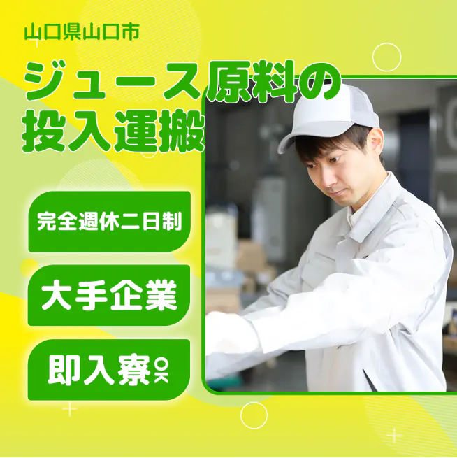 ジュース原料投入と台車運搬の製造補助です。
