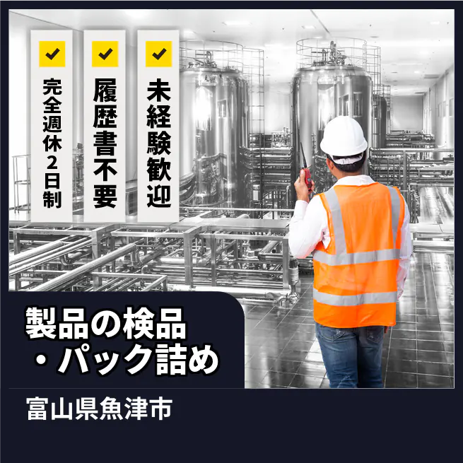 給与詳細 月収例 185,000円 時給例 1,130円 勤務地 富山県魚津市 仕事内容 半導体製造装置の組立作業です。6角レンチ等を用いてネジの締め付け業務をお願いします。クリーンルーム内での作業です。