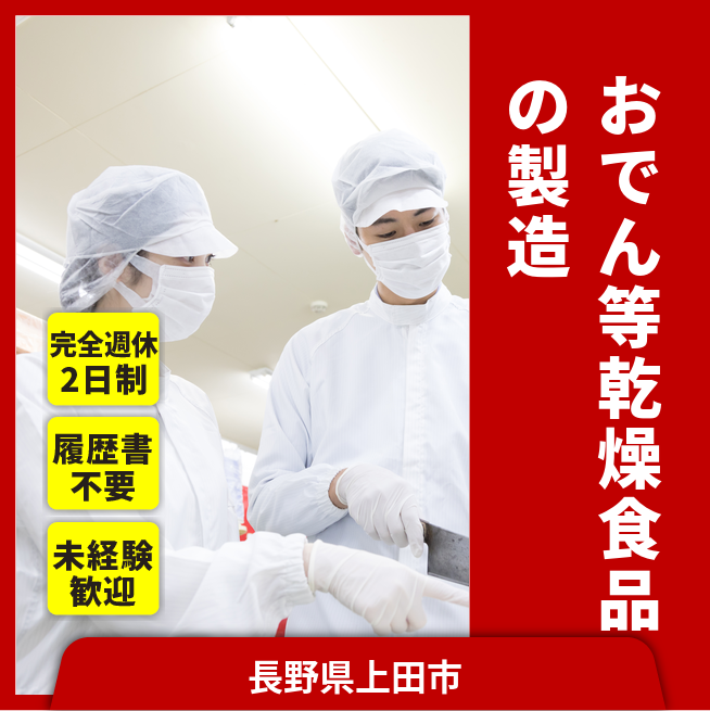 給与詳細 月収例 230,100円 時給例 1,180円 勤務地 長野県上田市 仕事内容 乾燥食品の製造、原料投入、食品加工、計量、梱包