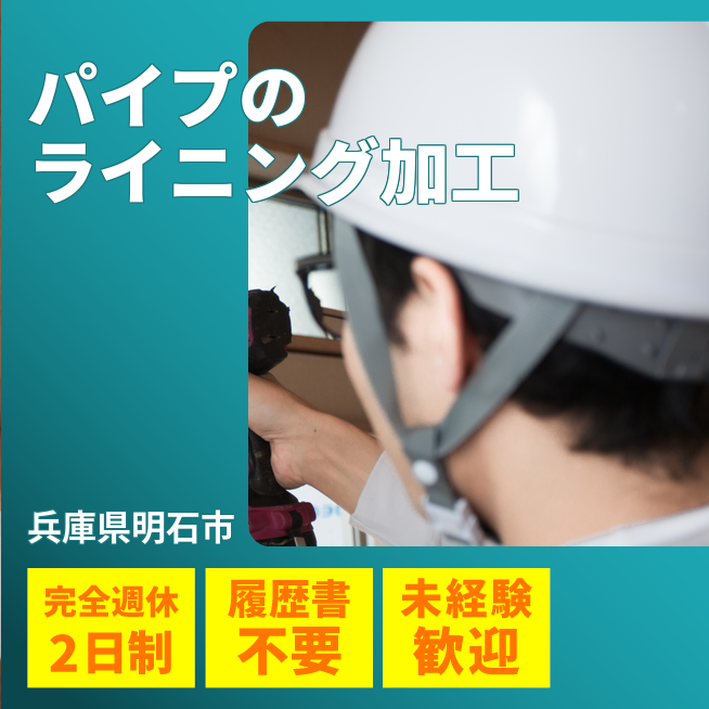 給与詳細 月収例 238,000円 日給例 11,900円 勤務地 兵庫県明石市 仕事内容 ポリエチレンライニング作業