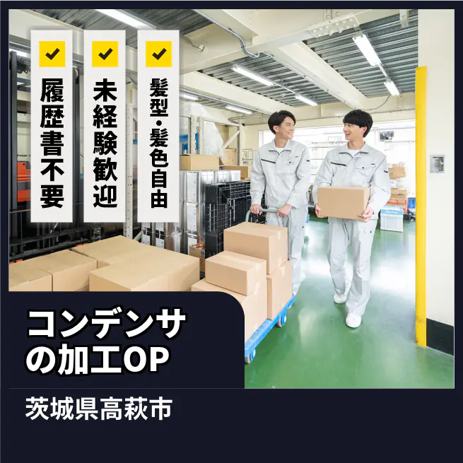 給与詳細 月収例 200,000円 日給例 10,000円 勤務地 茨城県高萩市 仕事内容 コンデンサの加工機械オペレーター