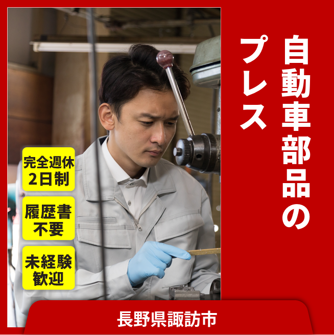 給与詳細 月収例 190,000円 時給例 1,180円 勤務地 長野県諏訪市 仕事内容 自動車のエンジン部品のプレス加工機オペレーター