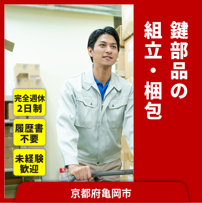 金属鍵部品の組立・検査・梱包作業です。
