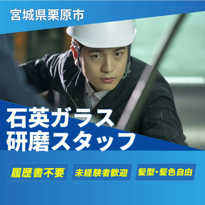 給与詳細 月収例 210,000円 日給例 10,500円 勤務地 宮城県栗原市 仕事内容 【石英ガラス研磨スタッフ】