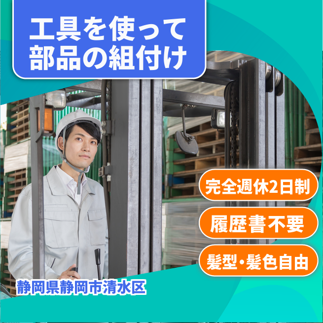給与詳細 月収例 235,000円 日給例 11,750円 勤務地 静岡県静岡市清水区 仕事内容 両腕を伸ばすぐらいの大型装置を一人で担当しマニュアルを見ながら、工具を使い組み立てていく。工具は様々ありますが、マニュアルの見方、不明点はちゃんと教えてくれます。