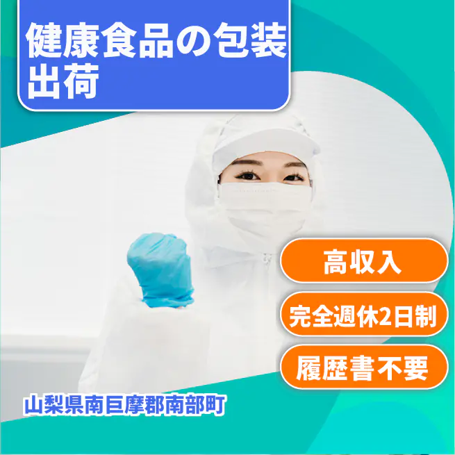 給与詳細 月収例 302,250円 日給例 12,400円 勤務地 山梨県南巨摩郡南部町 仕事内容 健康食品会社でのお仕事です!