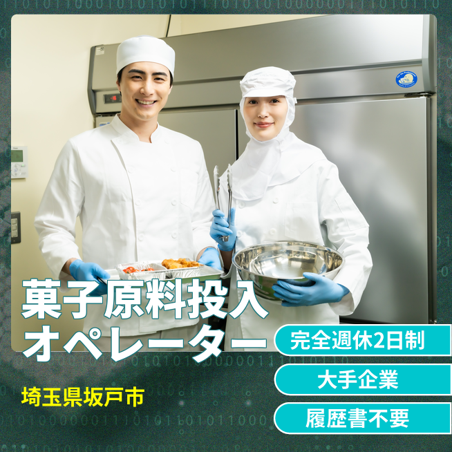 給与詳細 月収例 263,250円 日給例 10,800円 勤務地 埼玉県坂戸市 仕事内容 【菓子原料投入オペレーター】