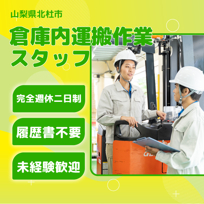 給与詳細 月収例 300,000円 日給例 15,000円 勤務地 山梨県北杜市 仕事内容 倉庫内でハンドリフト等を使用した運搬作業、入荷仕分け・出荷準備