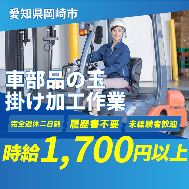 給与詳細 月収例 297,980円 時給例 1,700円 勤務地 愛知県岡崎市 仕事内容 【概要】
