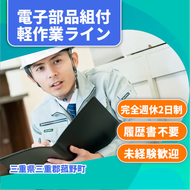 給与詳細 月収例 275,000円 日給例 13,750円 勤務地 三重県三重郡菰野町 仕事内容 【電子部品組付軽作業ライン】