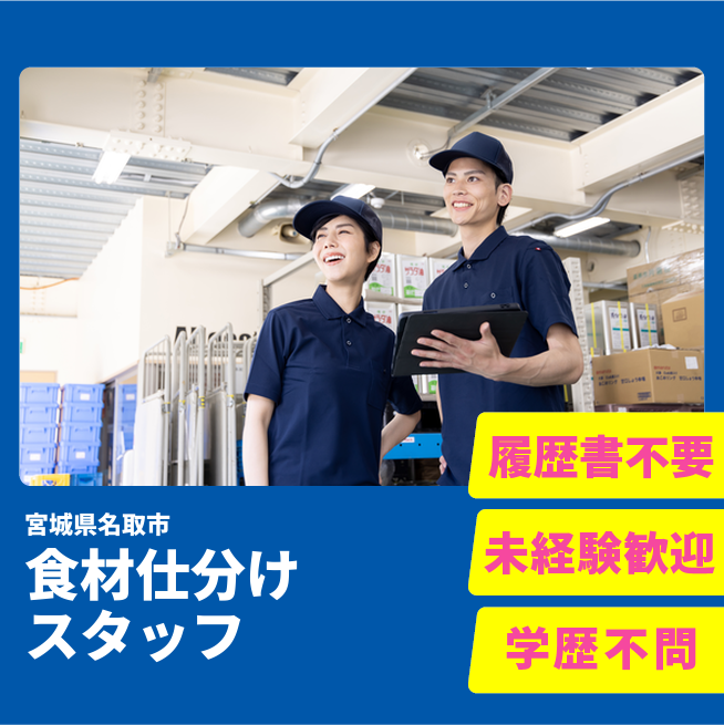 給与詳細 月収例 232,050円 時給例 1,190円 勤務地 宮城県名取市 仕事内容 【業務内容】