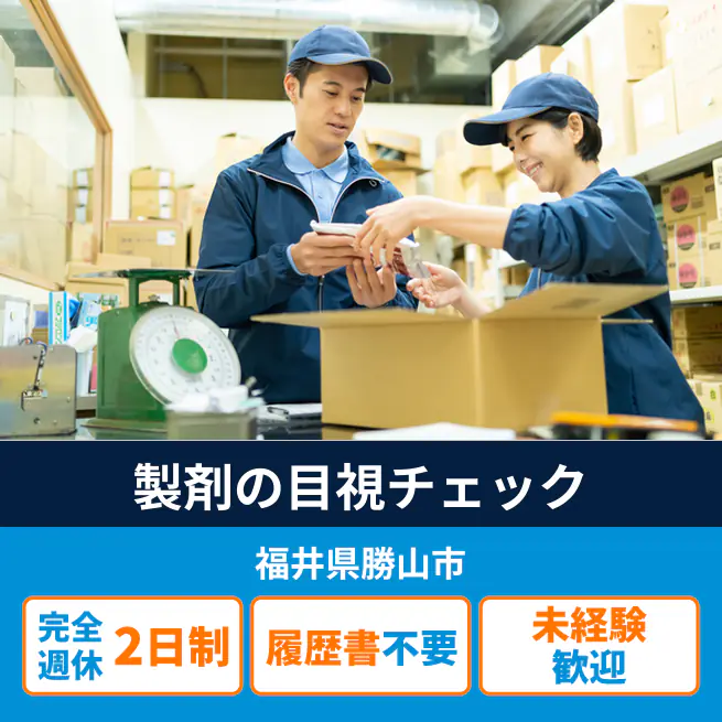 給与詳細 月収例 253,000円 日給例 12,650円 勤務地 福井県勝山市 仕事内容 【業務内容】