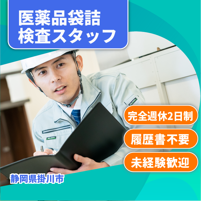 【製品】市販の医薬品【作業内容】機械ラインで袋詰めされるため、その監視及び検査。袋詰めされた製品を検査しながら箱詰めする作業。【重量】個包装されているため重量物なし【座り立ち】ラインにより座り作業、立ち作業がある【ラインorセル】ライン【その他】一日の中でライン内ローテーションあり