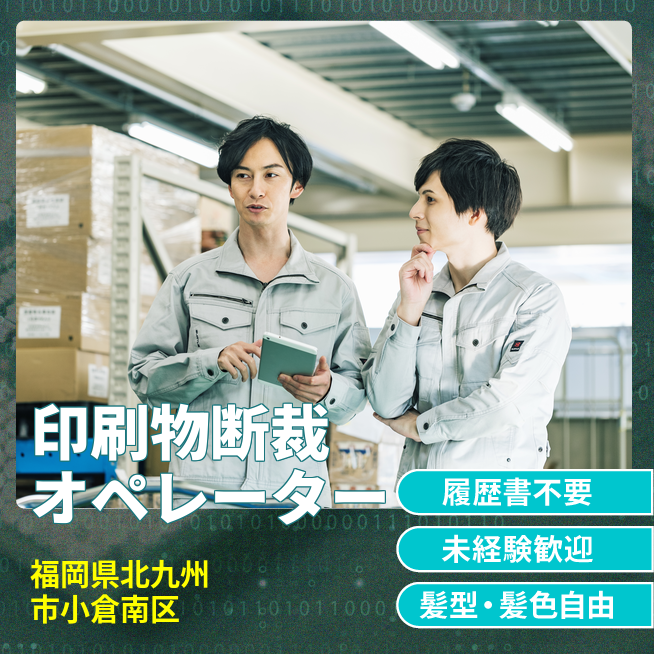 給与詳細 月収例 220,000円 日給例 11,000円 勤務地 福岡県北九州市小倉南区 仕事内容 【印刷物断裁オペレーター】