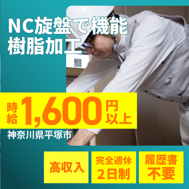 給与詳細 月収例 312,000円 時給例 1,600円 勤務地 神奈川県平塚市 仕事内容 NC旋盤、汎用旋盤を用いて、電線等製造会社での機能樹脂製造作業