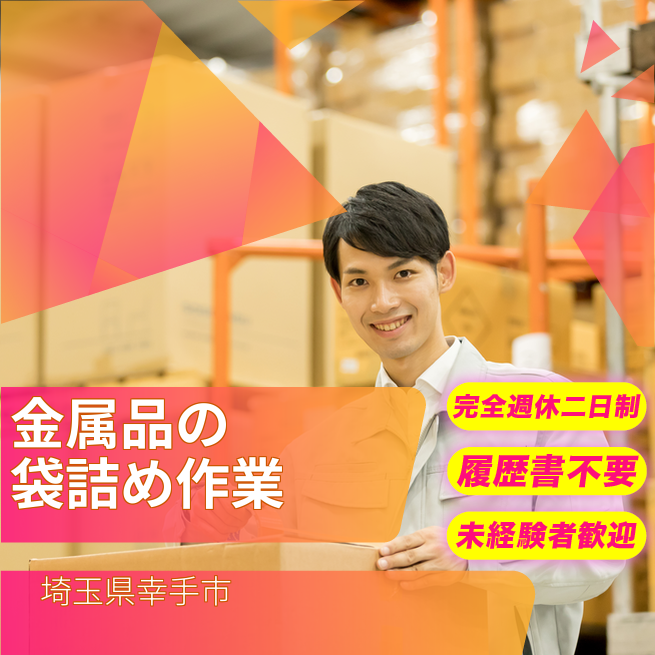 給与詳細 月収例 180,000円 時給例 1,200円 勤務地 埼玉県幸手市 仕事内容 【業務内容】ベアリングの包装・梱包作業
