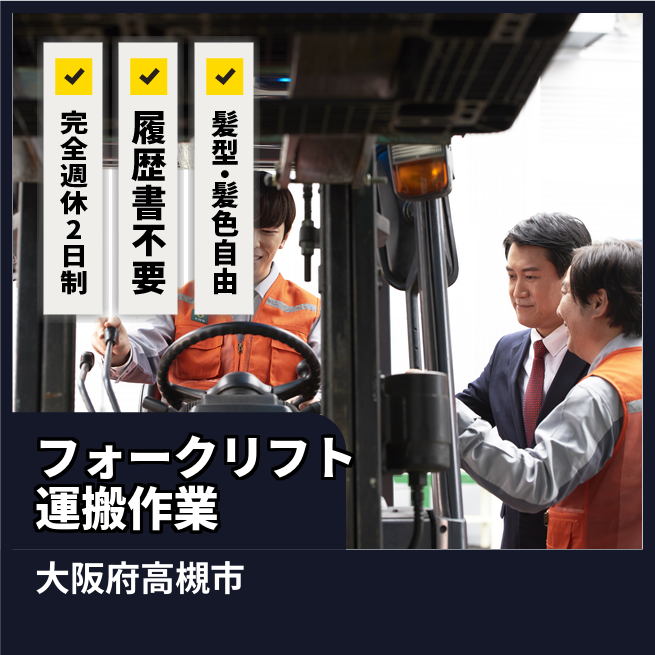 給与詳細 月収例 273,000円 日給例 11,200円 勤務地 大阪府高槻市 仕事内容 【業務内容】