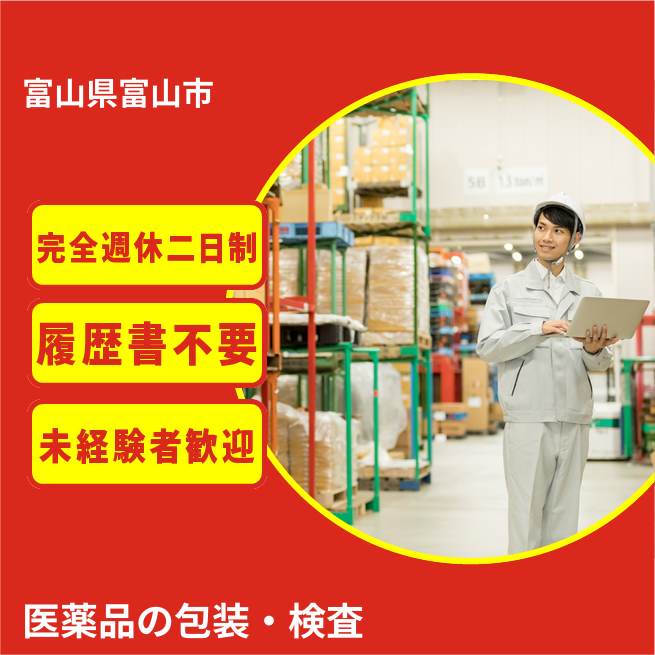 給与詳細 月収例 200,000円 日給例 10,000円 勤務地 富山県富山市 仕事内容 医薬品 点眼剤製造工程の包装・検査及び包装機械オペレーター