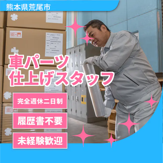 給与詳細 月収例 192,000円 時給例 1,100円 勤務地 熊本県荒尾市 仕事内容 【車パーツ仕上げスタッフ】