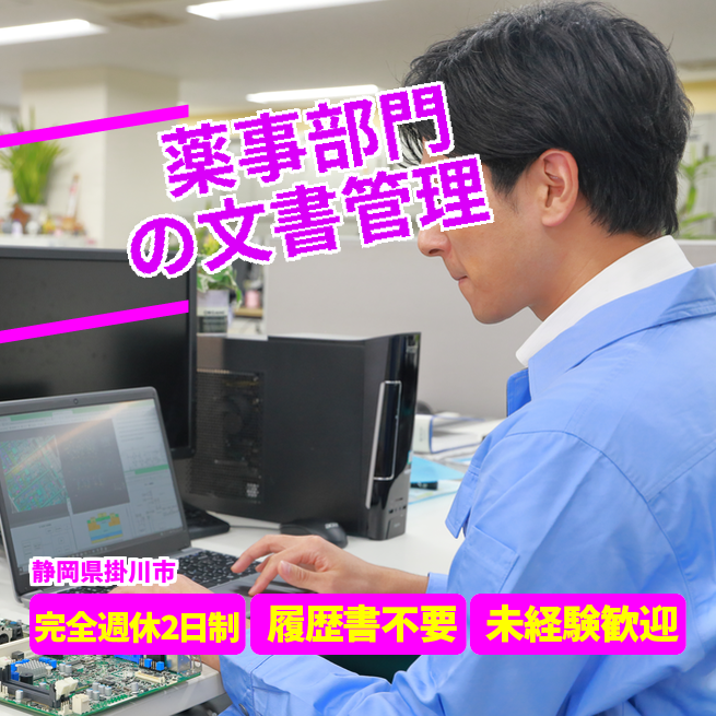 ◆試用期間あり(14日間) 公開日 2024年02月01日 薬事部門にて文書管理、データ入力のお仕事・GMP文書の管理(PDF化、保管作業)・GMP文書改訂(書類差し替え)・苦情品の写真撮影、連絡書作成・GMP記録書のデータ入力(Excel)・電話対応、その他雑務