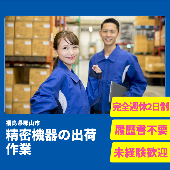 給与詳細 月収例 234,000円 時給例 1,200円 勤務地 福島県郡山市 仕事内容 精密機器(測量機器)の受付、入荷、保管、出荷(運搬)、梱包などの作業やお客様のシステムへのデータ登録、送り状作成等の簡単な事務作業を行っていただきます!