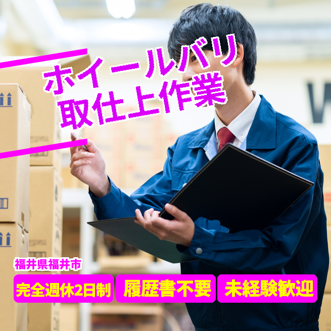 給与詳細 月収例 280,000円 日給例 14,000円 勤務地 福井県福井市 仕事内容 【ホイールバリ取仕上作業】